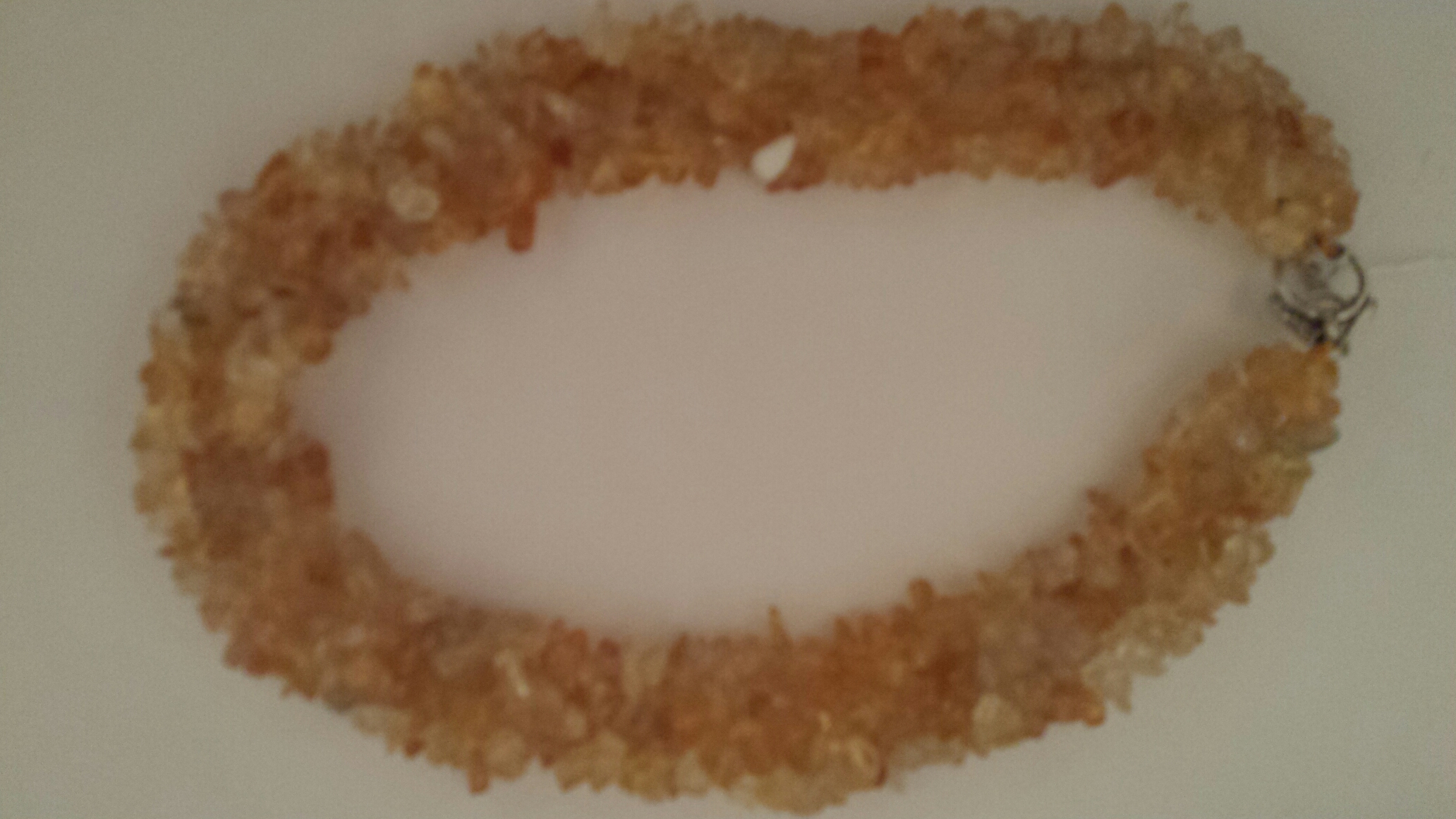 "Like the Sun" Gemstone Chip Band Necklace. Genuine Citrine. .925 Silver Over Copper toggle closure 17-1/3 inches in length.