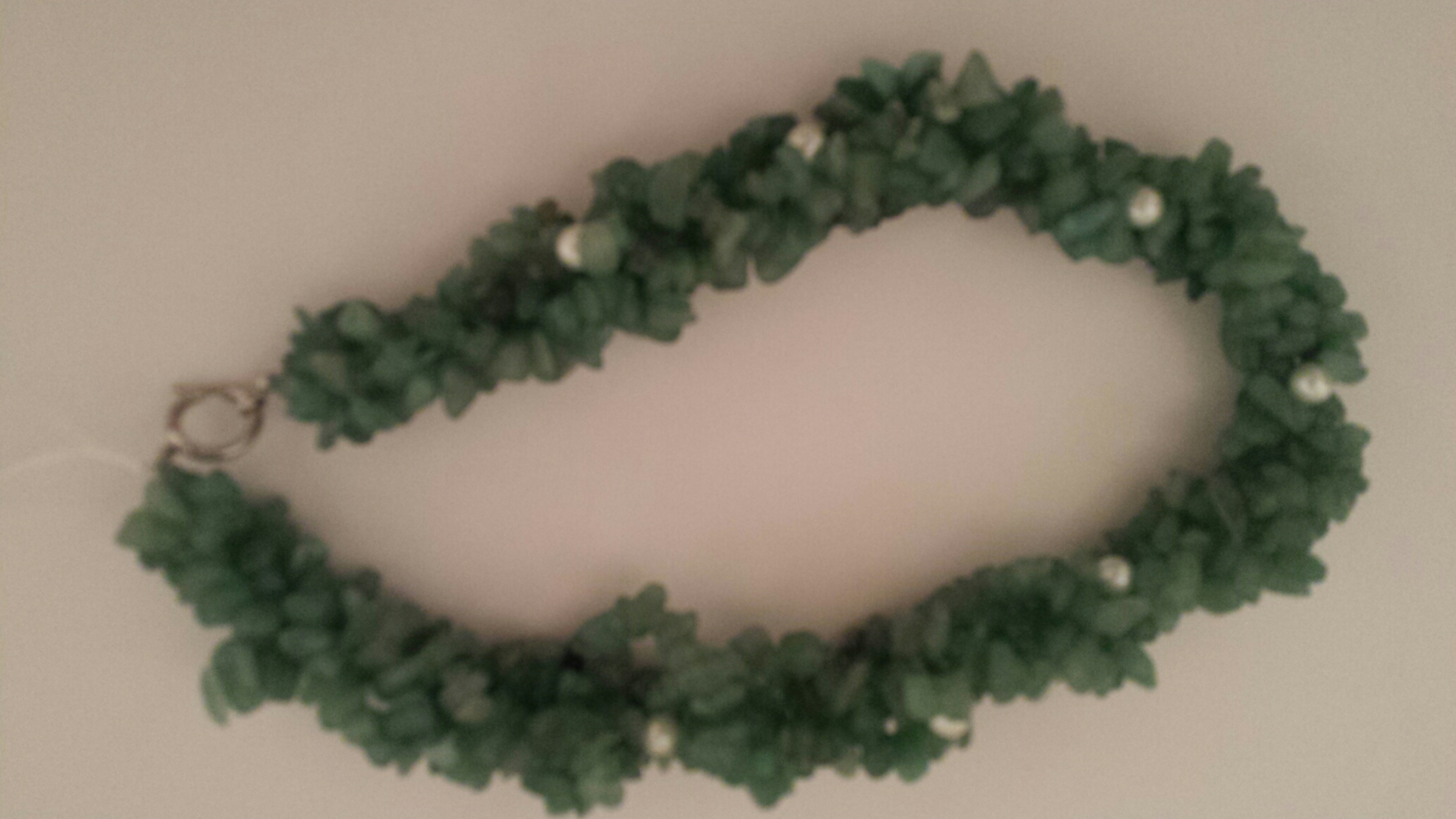 Earthen Treasures Gemstone Chip Band Necklace. Green Aventurine Band Necklace. Silver plated toggle closure. 16-2/3 inches long.