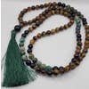 Mala Beads with Tassel. African Turquoise/Black Agate/Tiger's Eye with Agate Bead.