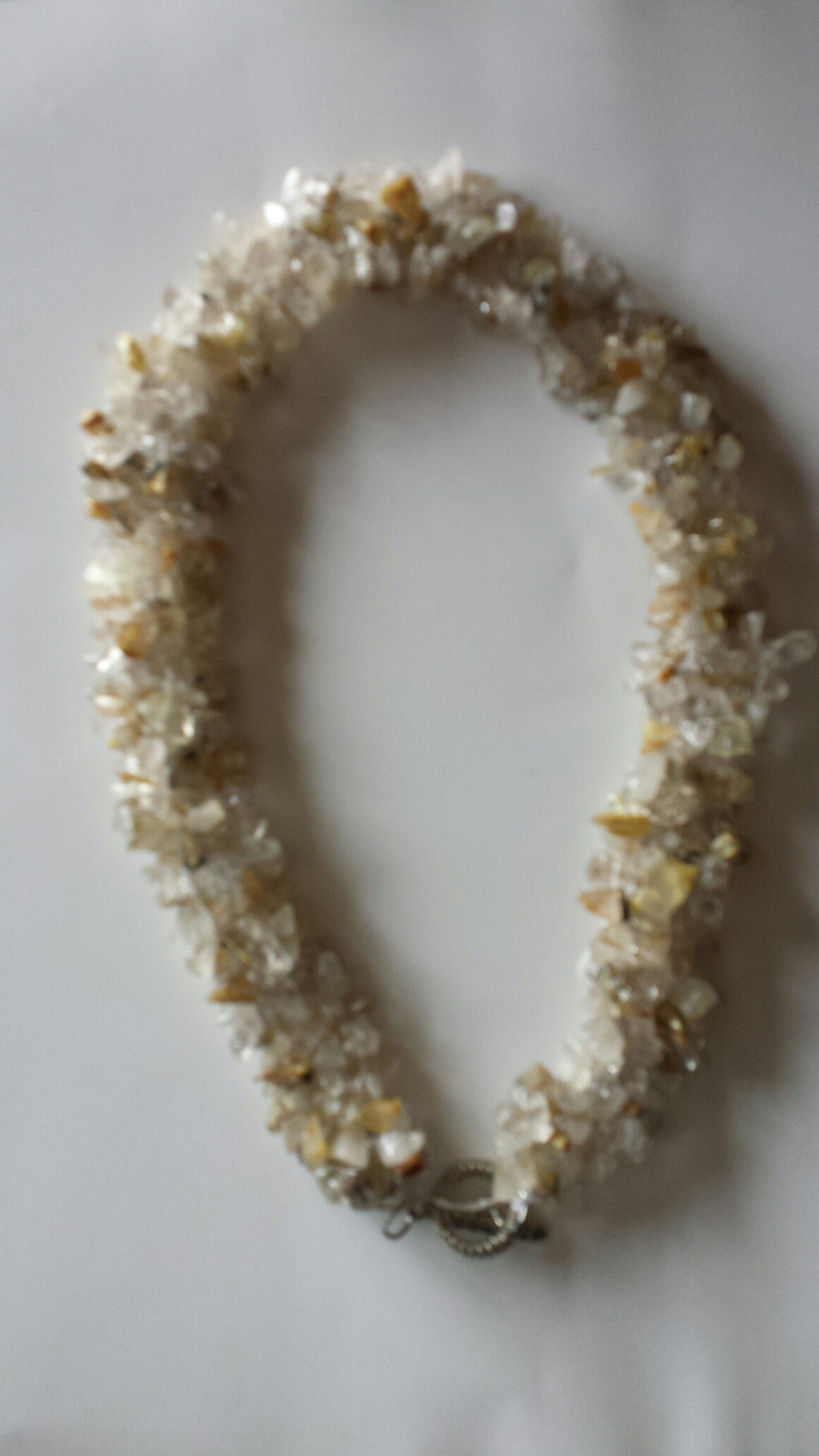 Power Jewels Natural Gold Rutilated Quartz Chip Stones Band Necklace. 17-5/8 inches. Silver plated toggle closure.