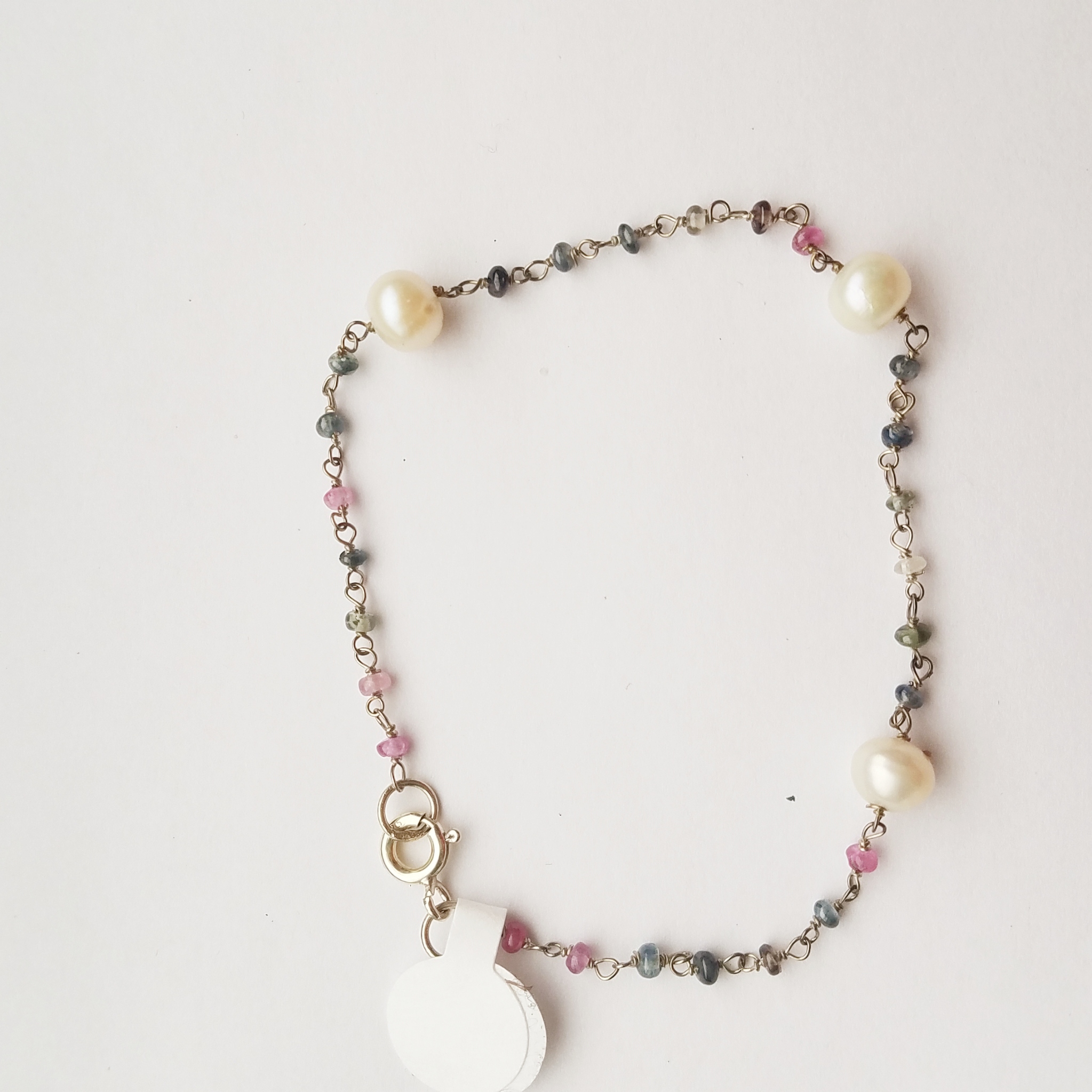 Genuine Freshwater Pearl and Sapphire Bracelet