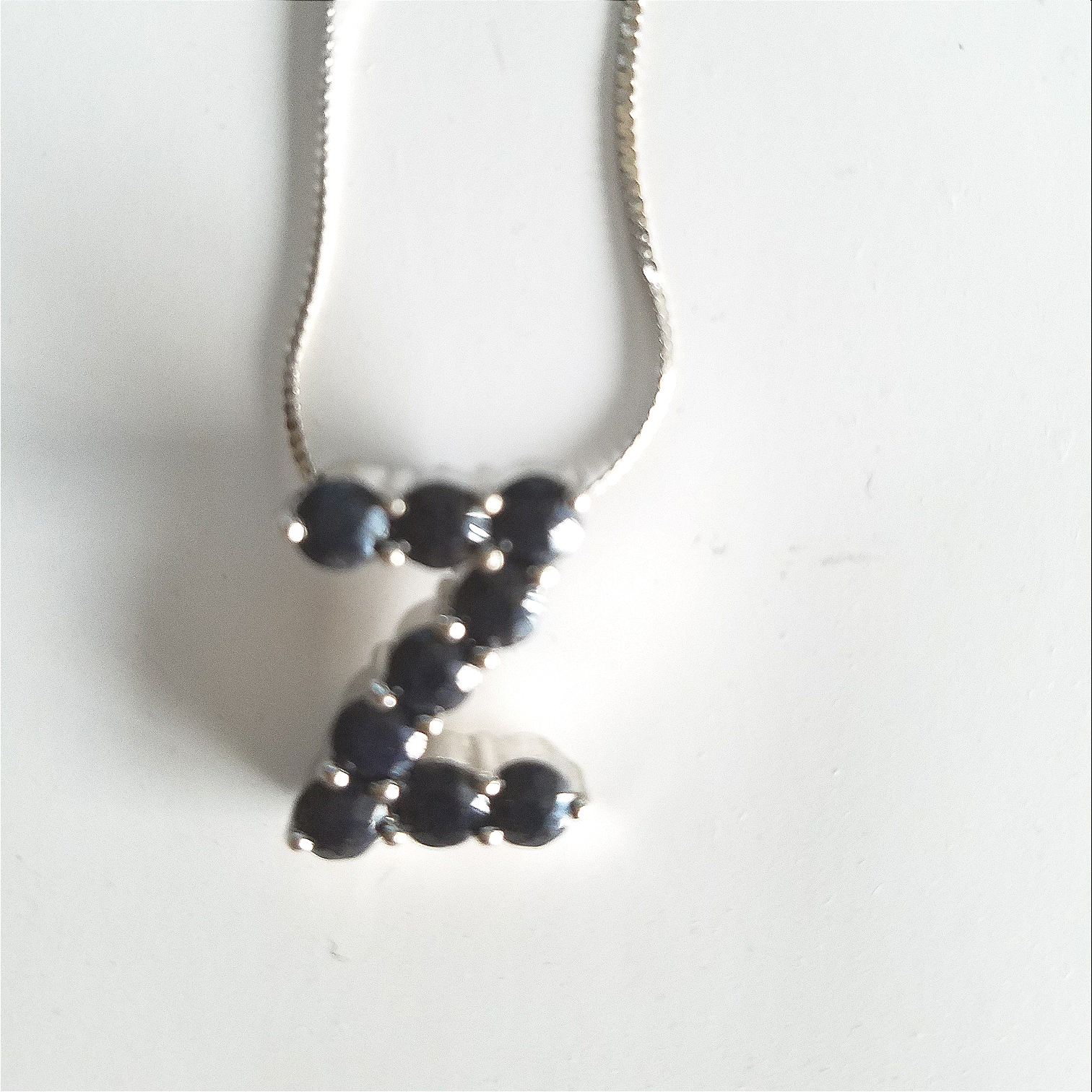 Quality Jewelry Initial "Z" Sapphire Pendant with 1.95 c.t.w. genuine sapphires. 925 Sterling . Chain is 16 inches long.
