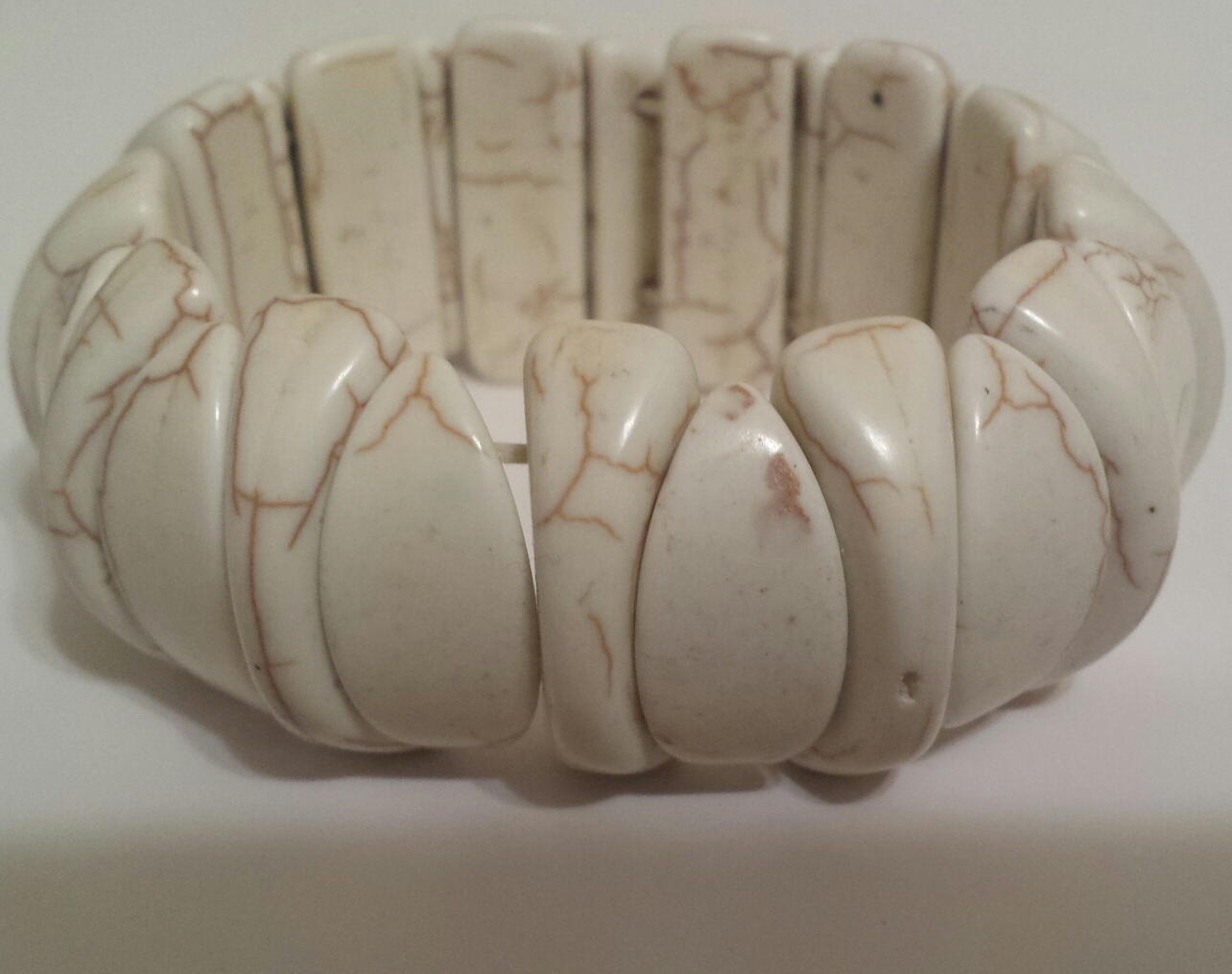 White Howlite Wide Bead Stretch Bracelet. Some imperfections.